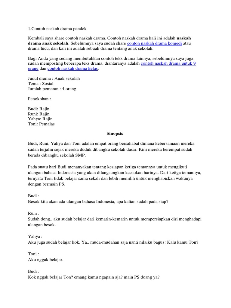 Contoh Teks Drama Singkat In 2021 Drama Komedi Lucu
